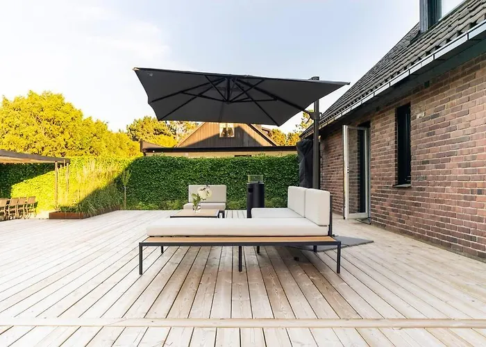 Gäster kan koppla av på en terrass med utsikt över trädgården. Cykeluthyrning finns i denna villa.